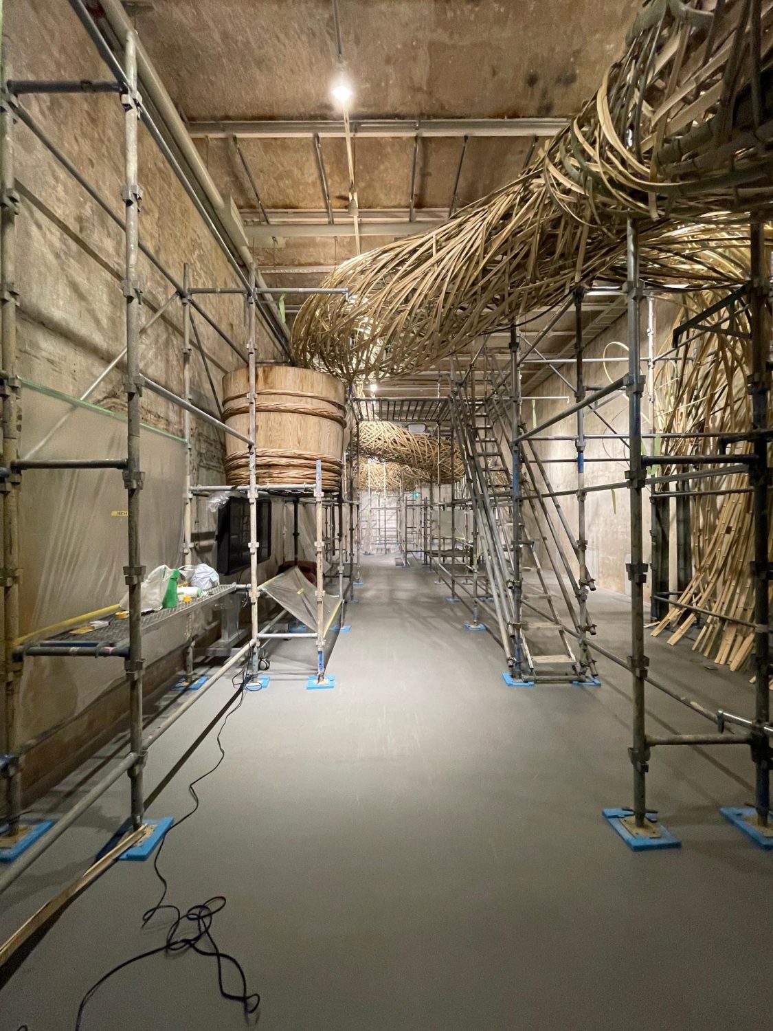 さらにその足場には間伐した竹によるインスタレーションが絡まりつきます。